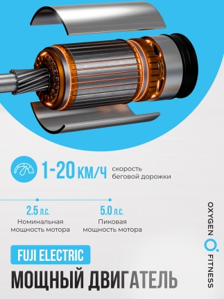 Оснащенная мощным двигателем мощностью 2.5 л.с. с пиковым значением 5.0 л.с., беговая дорожка обеспечивает плавный и стабильный ход со скоростью от 1 до 20 км/ч. Регулировка угла наклона осуществляется электрически с 20 уровнями, что позволяет варьировать нагрузку на мышцы. Комфортное беговое полотно размером 141х52 см и система амортизации с 4 эластомерами и 4 демпфирующими подушками обеспечивают отличную защиту суставов во время занятий. OXYGEN FITNESS RUSHWAY — это ваш надежный партнер в мире фитнеса, который поможет вам достигнуть новых высот в тренировках и поддерживать активный образ жизни прямо у вас дома!