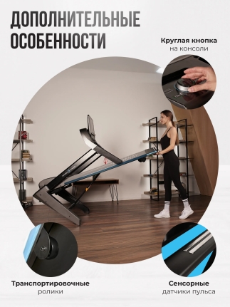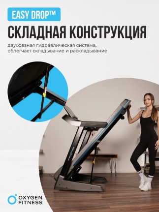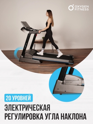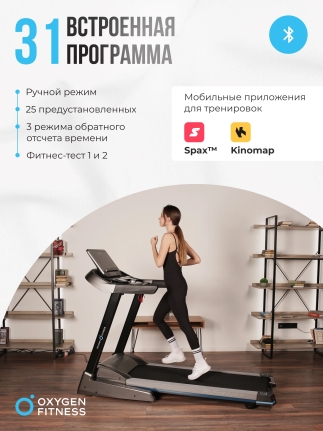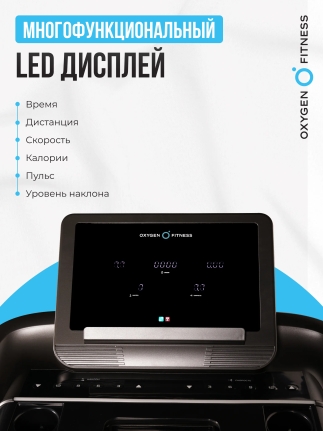 Беговая дорожка OXYGEN FITNESS RUSHWAY — идеальное решение для тех, кто стремится поддерживать свою физическую форму, не выходя из дома. С ее помощью вы сможете проводить увлекательные и эффективные тренировки, сочетая комфорт и высокую функциональность. Элегантный дизайн и прочная конструкция делают эту дорожку надежным спутником на пути к здоровью и активному образу жизни. Дорожка оборудована консолью с 5 LED дисплеями, которые отображают ключевые показатели: скорость, дистанцию, время, калории, пульс и угол наклона. Поддержка русского и английского языков интерфейса позволяет легко ориентироваться в настройках. OXYGEN FITNESS RUSHWAY предлагает 31 программу тренировок, включая ручной режим, 25 предустановленных программ и фитнес-тесты, что дает возможность выбрать оптимальный вариант для достижения ваших целей.