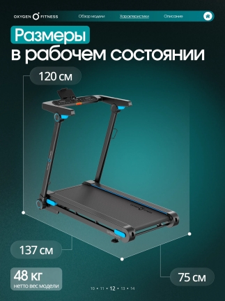 Складная конструкция, транспортировочные ролики. Максимальный вес пользователя — 130 кг. OXYGEN FITNESS SPEEDWAY — технологичное решение для эффективных домашних тренировок с расширенным функционалом и комфортной амортизацией.