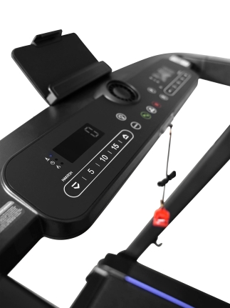 Скорость от 1 до 16 км/ч подходит для ходьбы, лёгкого и интенсивного бега. Полотно 123 × 46 см и дека 15 мм создают устойчивую и безопасную зону для тренировки.