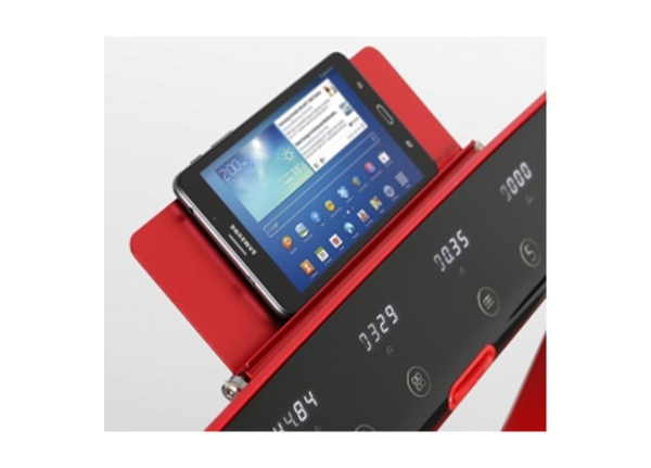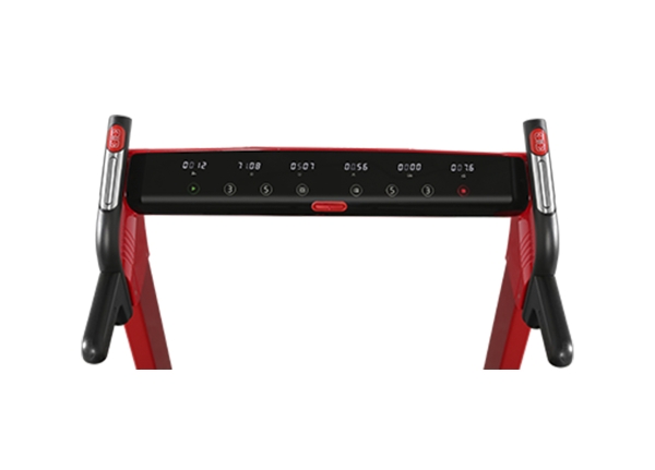 К другим преимуществам серии относятся компенсаторы неровностей пола, за счет которых можно точно зафиксировать тренажер на неровной поверхности. На поручнях находятся сенсорные датчики пульса, а также "быстрые" кнопки изменения скорости и угла наклона. Мультимедийная компонента представлена динамиками мощностью 3 Ватта с разъемами AUX и USB для подключения мобильных устройств и воспроизведения с них аудио-файлов. Приятной опцией является подставка под планшет или смартфон. И последний штриф, он чисто дизайнерский. По краям консоли и вдоль подставки под планшет проходит ярко-красный светодиод. При неярком освещении и без того эффектная высокотехнологичная дорожка смотрится как футуристичный продукт из будущего.