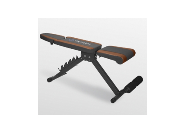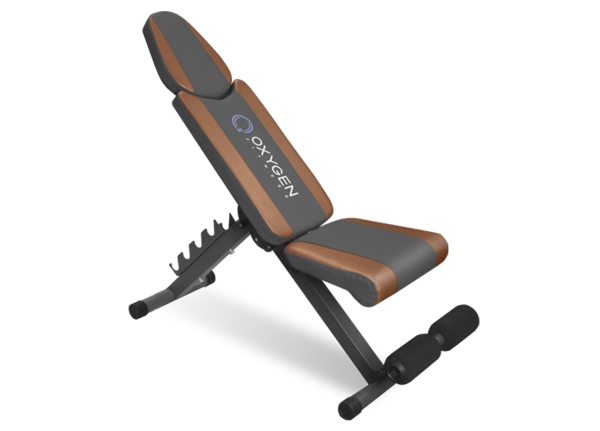 Жимовая скамья Оксиджен Фитнес Нэшвил для средних нагрузок с профилем 50*50 мм. и максимальным совокупным весом нагрузки 150 кг. За счет широких возможностей по регулировке тренажер можно использовать как стандартную скамью для жима (угол наклона спинки 45 градусов), как горизонтальную скамью или скамью с отрицательным наклоном (угол наклона -25 градусов). Валик для ног обладает свободным ходом и зависит от положения скамьи. Подставка под гантели рассчитана на хранение двух пар гантелей (сами гантели в комплект не входят). Скамья складывается и удобна в хранении, ее можно положить под кровать, поставить за дверь или в кладовку - в сложенном виде ее высота составляет всего 20 см. Рамзмер спинки сидения - 825* 300 мм, сидение - 290*300/350 мм.